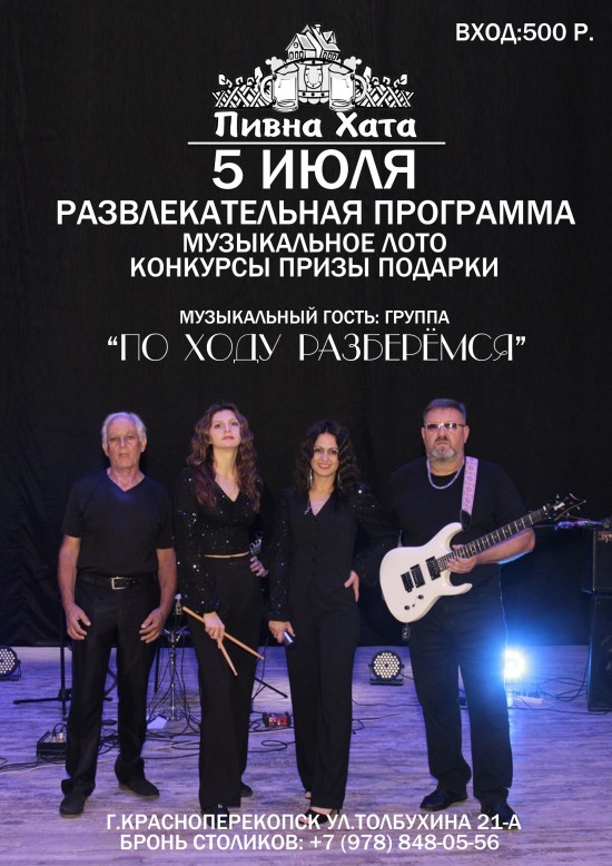 Вас ЖДУТ всеми вами любимые ХИТЫ в исполнение КАВЕР- ГРУППЫ “ПО ХОДУ РАЗБЕРЁМСЯ”